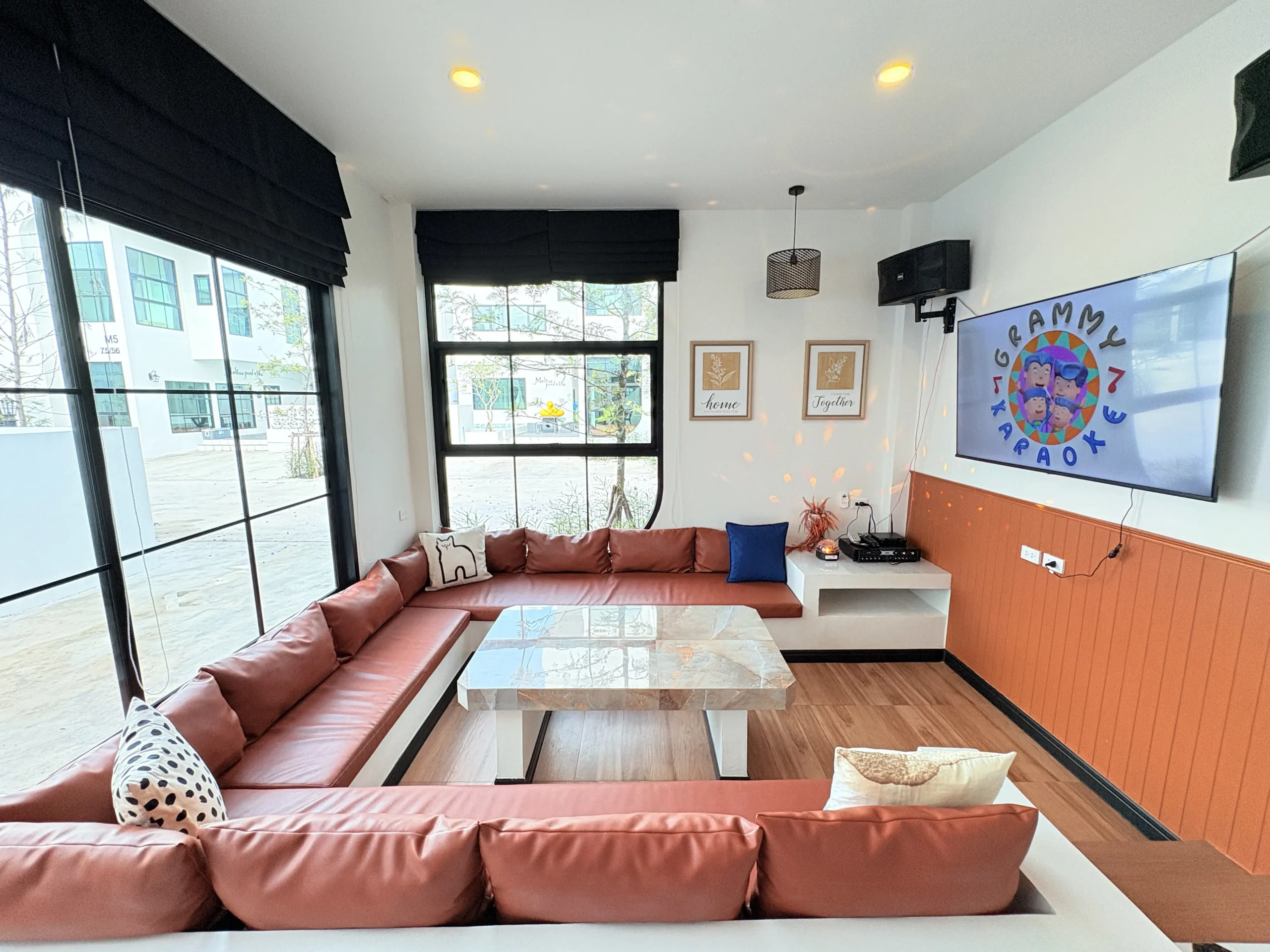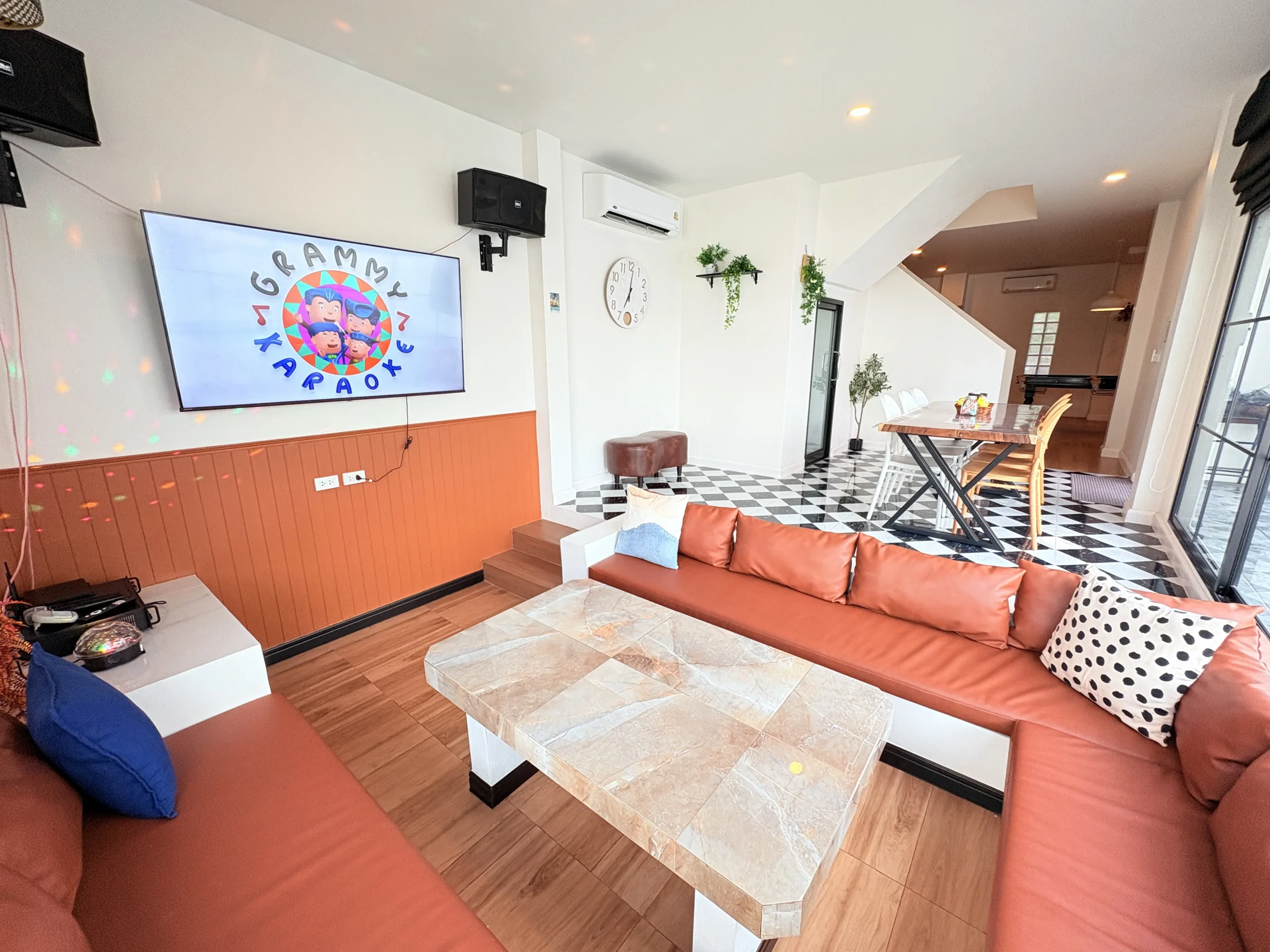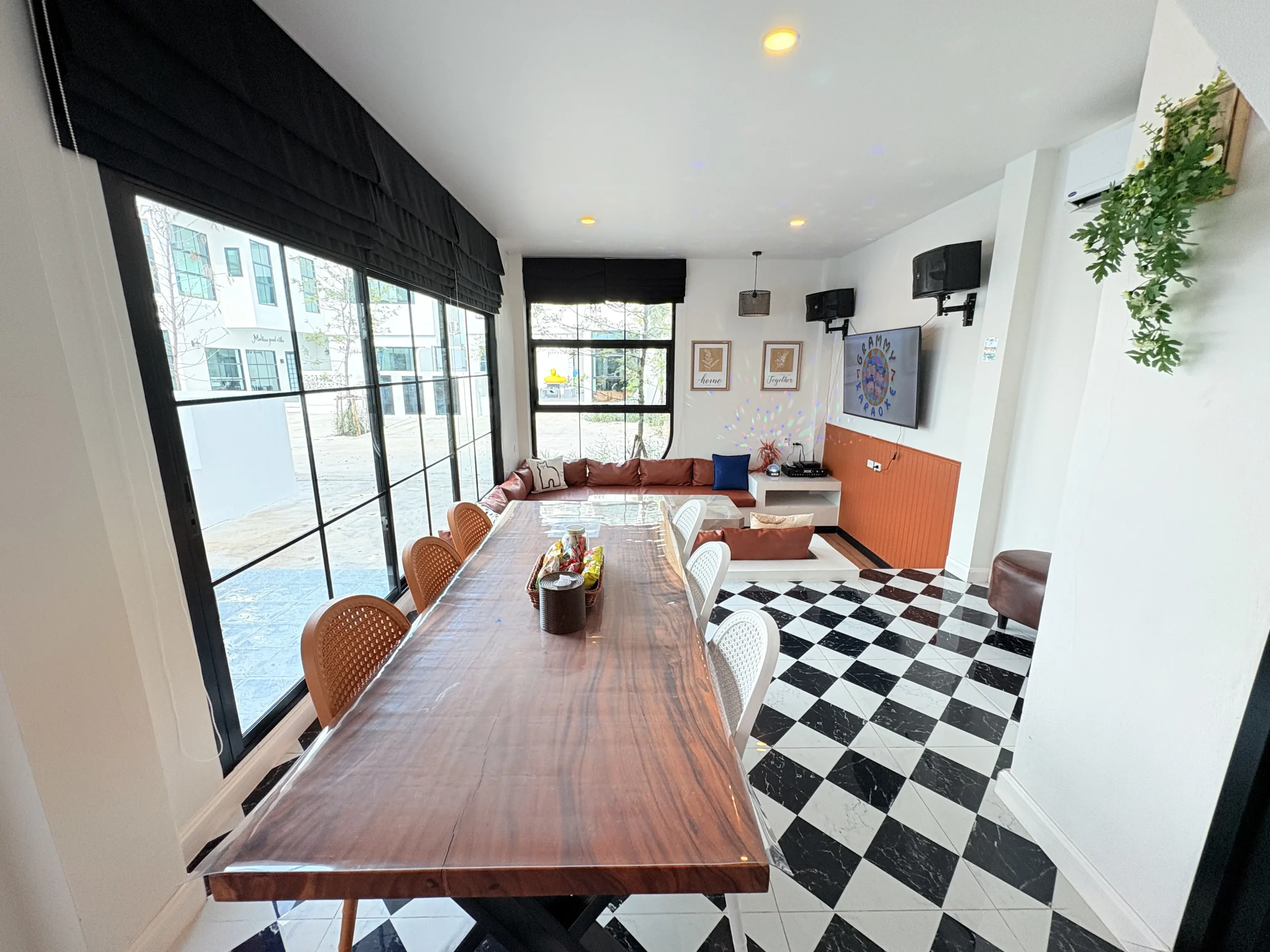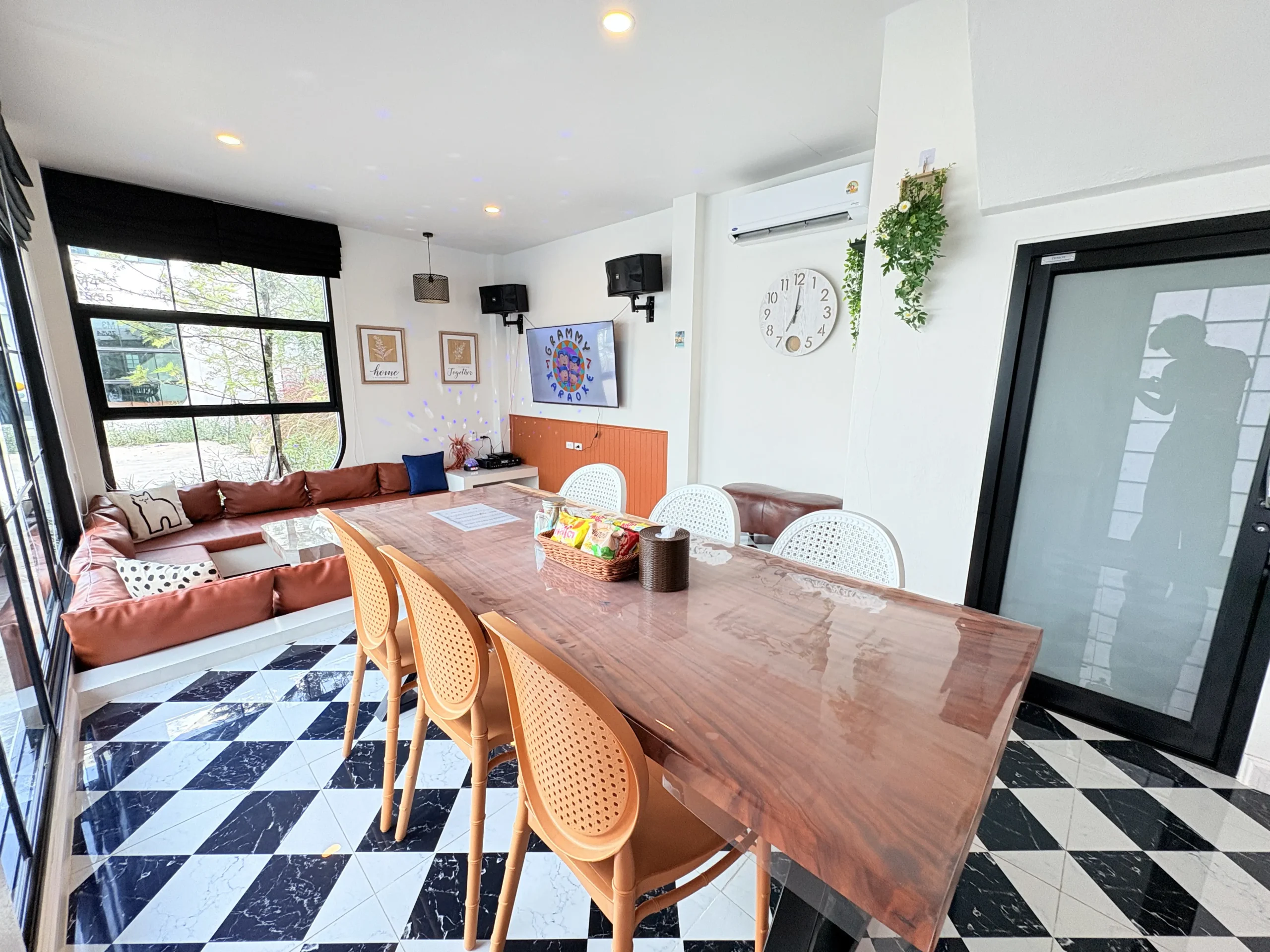 🎀 โซนนั่งเล่นกว้างขวางสบายสุดๆ มีที่นั่งทานอาหารทั้งในบ้าน นอกบ้าน ริมสระว่ายน้ำ🎀