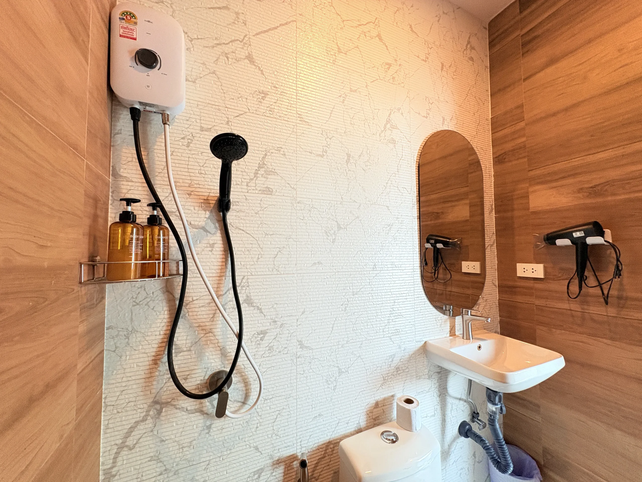 ✅อุปกรณ์ในห้องน้ำ เครื่องทำน้ำอุ่น ไดร์เป่าผม แชมพู สบู่เหลว กระจก